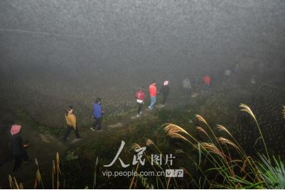 新娘之所以“不落夫家”,一是仍要報答父母的養(yǎng)育之恩;二是舍不得童年伙伴,還要回到寨子里與伙伴們伴做伴,最長可達三年之久;直到同伴都有了對象才分散,新娘方到新郎家長住下去,這樣的奇趣婚俗也在黔東南的一些侗族地區(qū)一直得以保存下來。圖為11月17日凌晨,新郎家派來的娶親隊伍點著火把前來娶親。
