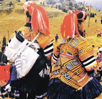 要論“疊穿”的數(shù)量之最,則當(dāng)屬貴州大方縣顯母村的苗族女性了。與苗族慣用銀飾的固有印象不同,這里的苗族女性鮮以銀為飾,她們用數(shù)量極為可觀的服飾“疊穿”來彰顯富裕。節(jié)日里,顯母村的苗族女性換上盛裝——數(shù)條百褶裙系在腰間,塑造出豐腴的臀部造型,內(nèi)層裙子素凈無花,外層裙子則布滿條帶狀蠟染裝飾。在這個難得的大型社交場合,未婚女孩通過“疊穿”后的獨特造型來展示自己的魅力,衣物的數(shù)量和精致程度成為了吸引異性、獲得肯定的重要標(biāo)準(zhǔn)和獲得美好婚姻的重要條件。到了婚禮時,女性所著裙子的數(shù)量更是可達(dá)35條。婚后,她們要在裙邊加上一圈深色邊飾以作標(biāo)識。