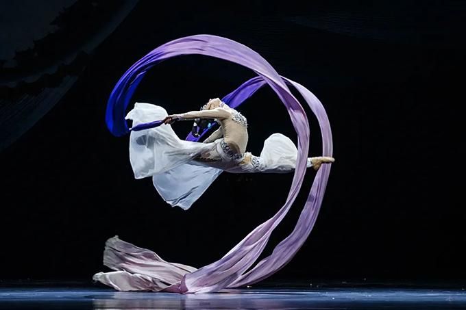 舞劇《傳絲公主》以蠶絲為戲劇元素,以蠶桑女寧兒與于闐王子尉遲的愛情為外在線索,以盛唐時中原與西域的交流往來為隱伏線索,將凄美的愛情故事與壯闊的家國情懷交織在一起,引領(lǐng)觀眾穿越到大唐盛世,感受繁興的絲路文化和豐富多彩的民族風(fēng)情。