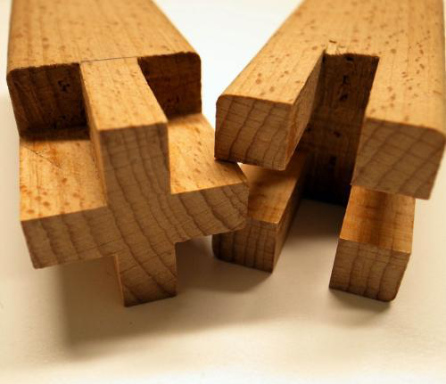 傳統(tǒng)榫卯結(jié)構(gòu)技術(shù)要求:榫頭厚度小于榫眼寬度0.1-0.2mm,當(dāng)榫頭厚度大于榫眼寬度時由于擠壓引起膠液流失從而降低膠合強(qiáng)度,裝配時也容易使榫眼開裂。榫頭寬度比榫眼長度大0.5-1mm,硬材為0.5mm,軟材為1mm。榫頭長度比榫眼深度小2-3mm并大于榫眼零件厚度的一半。直角榫頭的厚度:單榫接近于方才厚度的0.4-0.5,雙榫的總厚度也需接近此數(shù)值。