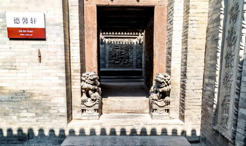 正廳大門之上的門楣,是一塊精美絕倫的木雕,采用雕、嵌、描、繪等多種裝飾技法,將喜鵲鬧春的場景表達(dá)得惟妙惟肖,具有極高的藝術(shù)價值;除了雕刻著代表中國傳統(tǒng)文化精神的梅蘭竹菊外,許多地方的門窗,尤其是專供男孩子們讀書的庭院中的窗子,都雕成簡潔古樸的書本或折扇的形狀,表達(dá)了“萬般皆下品,唯有讀書高”的文化追求。