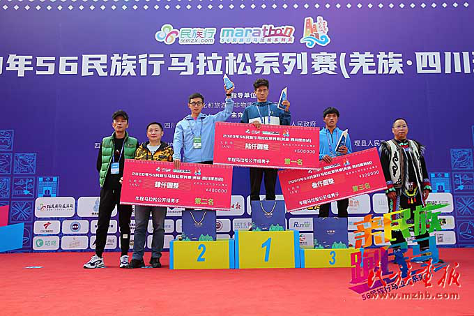 民馬(羌族?四川理縣站)是四川省首場(chǎng)民族特色馬拉松賽事,也是羌年第一跑。比賽吸引了全國17個(gè)省市、9個(gè)民族的兩千多名參賽選手,“親民族,跑民馬”,一起歡度羌年,了解羌族獨(dú)特的民俗文化。選手們從東方古堡桃坪羌寨出發(fā),經(jīng)過激烈的角逐,最終沙正友、洪躍、馬昭尖分別以1小時(shí)08分19秒、1小時(shí)10分31秒、1小時(shí)10分38秒的成績獲得男子半程馬拉松前3名,李春霞、谷錦錦、潘素芳分別1小時(shí)26分2秒、1小時(shí)26分24秒、1小時(shí)30分11秒的成績獲得女子半程馬拉松前3名。