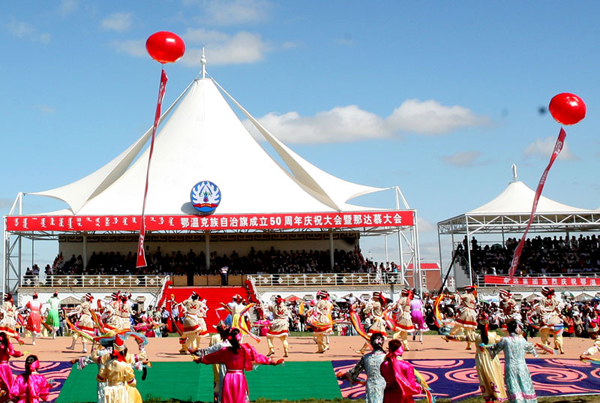 成立于1958年的鄂溫克自治旗是中國三個少數(shù)民族自治旗之一,位于內(nèi)蒙古自治區(qū)東部,大興安嶺西麓、呼倫貝爾大草原東南部,由鄂溫克、蒙古、漢、達(dá)斡爾等21個民族組成,總?cè)丝诮咏?5萬。絢麗多姿的民俗風(fēng)情,使鄂溫克大地蘊藏了濃厚的民族特色文化。鄂溫克旗每年舉辦“鄂溫克瑟賓節(jié)暨賽牛大會”、“內(nèi)蒙古冬季那達(dá)慕暨鄂溫克冰雪旅游節(jié)”、“敖包相會國際情歌節(jié)”、“馬文化節(jié)”、“伊敏河之夏文藝匯演”等活動,這些特色鮮明的文化活動也逐漸成為自治旗民族特色文化品牌。隨著全旗文化事業(yè)的蓬勃發(fā)展,鄂溫克旗先后獲得“全國文化先進(jìn)縣”、“全國體育先進(jìn)縣”、“全區(qū)民間歌舞藝術(shù)之鄉(xiāng)”、“全國民族團結(jié)進(jìn)步模范集體”等榮譽稱號。