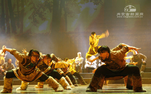 演員們的表演也頗為出色。參演的60多名演員全部來自鄂溫克自治旗烏蘭牧騎,這是一支以年輕人為主的隊伍,他們在舞臺上的精彩表現(xiàn)給這部歷史題材的歌舞劇增添了青春的活力。比如“搶樞”一場,不僅形象地再現(xiàn)了鄂溫克民間一項傳統(tǒng)娛樂活動——“搶樞”,突顯了年輕人活潑好動的特點,而且傳達(dá)出鄂溫克年輕人在遷徙途中不畏艱險、苦中作樂的頑強精神。尤其是在本場最后,小伙子們一段奔放狂野的群舞盡顯陽剛之美,展現(xiàn)了鄂溫克民族的豪爽與激情。