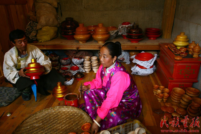 牧業(yè)。 藏區(qū)的牧業(yè)占很大比例,牛羊是藏族的重要生活資源。牦牛是青藏高原的特產(chǎn),被譽為“高原之舟”。牦牛原是野牛,很早以前,被人們馴化后,成為既產(chǎn)乳、毛、肉,又可役用的家畜。牦牛全身是寶,現(xiàn)在,一頭成年牦牛價值近萬元,是牧民的主要生活資料。牦牛生活在海拔3000米左右的山上,除奶牛外,其他牦牛常年在野外,牧民不必天天放牧,十天半月查看一次,到春季脫毛時將牦牛趕回圈中拔毛刷絨。牦牛毛是拔而不是剪,拔毛時先將毛纏在一30厘米長的木棒上,然后用力拔,拔完長毛后在用一把七齒鐵刷刷絨。牛絨有極好的保暖性,是制絨衣的上好材料。