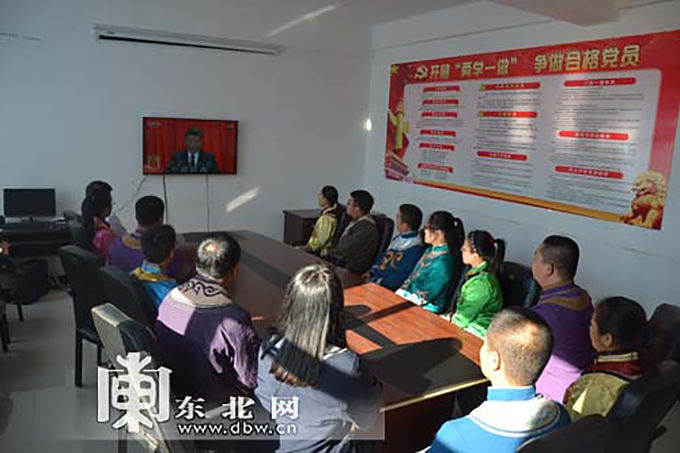 10月18日,同江市八岔赫哲族鄉(xiāng)干部群眾激動(dòng)地收看黨的十九大開(kāi)幕會(huì)