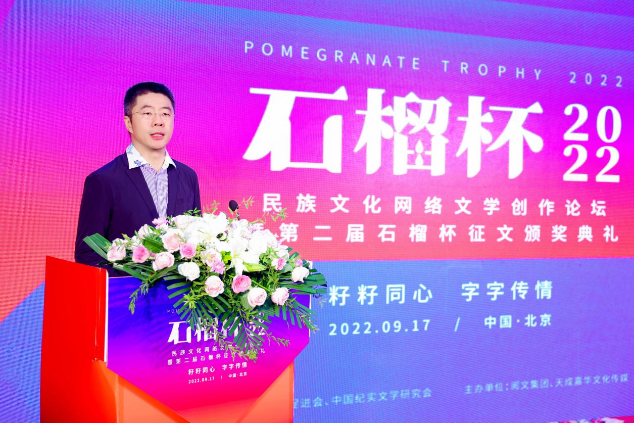 2022年9月17日,民族文化網(wǎng)絡(luò)文學(xué)創(chuàng)作論壇暨第二屆石榴杯征文頒獎活動在民族文化宮舉行。本次活動得到了國家民委所屬中國少數(shù)民族文化藝術(shù)促進會和中國紀實文學(xué)研究會的指導(dǎo)與支持,由閱文集團、北京天成嘉華文化傳媒主辦,天成達星國際傳媒承辦。