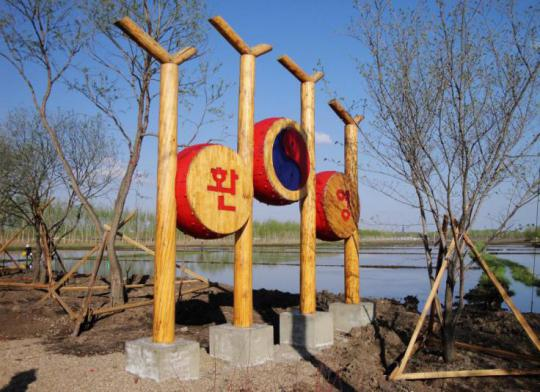 阿榮旗新發(fā)鄉(xiāng)東光村歷史悠久,地處xian城郊,西鄰阿倫河,三面曲水環(huán)繞,擁有3000畝優(yōu)質(zhì)稻田,楊柳疏朗,稻田錯(cuò)落,田園景致幽美,村內(nèi)建筑布局有致,村民充分發(fā)揮地理優(yōu)勢,打造自然生態(tài)景觀和人文景觀,在村中修建了很多帶有朝鮮族特點(diǎn)的民居、寨門、文化廣場、民俗館、養(yǎng)老院、餐飲一條街等,這些都保留著朝鮮族聚居區(qū)獨(dú)有的生活習(xí)俗和文化景觀。