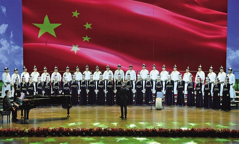 內(nèi)蒙古民族藝術(shù)劇院蒙古族青年無伴奏合唱團(tuán)演唱《鴻雁》。