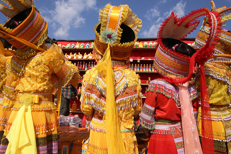 從老撾來(lái)參加踩花山的苗族女子樂(lè)隊(duì)