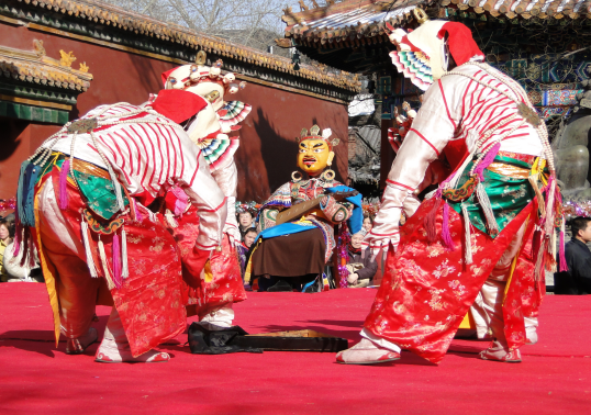 內(nèi)蒙地區(qū)的查瑪樂舞已與藏族地區(qū)的“羌姆”明顯不同。隨著藏傳佛教傳入蒙古地區(qū)后,積極的吸收和融合了蒙古族傳統(tǒng)音樂舞蹈和薩滿教神舞的因素后形成了蒙古化的查瑪樂舞。因此,內(nèi)蒙地區(qū)的查瑪內(nèi)具有復(fù)合型和多元性特點。2008年,查瑪樂舞被列入國家級非物質(zhì)文化遺產(chǎn)。