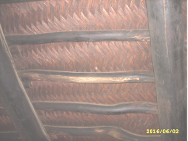 如今,錫伯族人多建蓋被稱為“來(lái)蘭皮”的房屋,大多為土木結(jié)構(gòu),木料為骨架,土坯為墻,有的有“瑪圖”(擋風(fēng)的屏墻)。其大致造法是:當(dāng)房屋壘到一定高度后,梁上放椽子,然后是檁條。把比碗口粗的椽子從中間鋸成兩片(細(xì)一些的不鋸)在墻上水平放7、9、11根(奇數(shù))。把剝了皮的葦桿(蘆葦桿踩扁后泡在水里數(shù)天,使之不易扯斷),俗稱“葦子把”,5-6根一把,用葦子隔3-4厘米一把扎在橫椽底下,在葦子上面抹粗麥葉子泥,等干后,房子里層再抹細(xì)泥上光,稱之為“來(lái)蘭皮”。在來(lái)蘭皮上面壘山墻封頂。