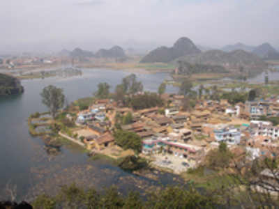 在一次學(xué)術(shù)會議上,筆者請教了首倡并主導(dǎo)“民族文化生態(tài)村”試點(diǎn)建設(shè)的尹紹亭教授,得知在他們首期的五個試點(diǎn)村落建設(shè)中,仙人洞村是比較成功的,于是在本項(xiàng)目的調(diào)查中,仙人洞村成為重點(diǎn)考察的對象之一。“仙人洞彝族文化生態(tài)村”位于云南丘北縣城西北16公里的普者黑湖畔?!捌照吆凇睘楫?dāng)?shù)匾妥迦瞿嵴Z,意為“魚蝦多的湖潭”。普者黑實(shí)際是由眾多湖泊、河流構(gòu)成,總面積達(dá)165平方公里,已經(jīng)開發(fā)成由5個景區(qū)、56個景點(diǎn)組成的滇東南國家級著名旅游景區(qū)。