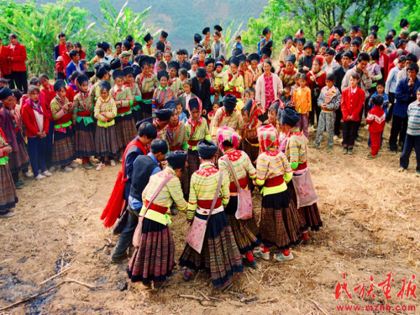 按傈僳族傳統(tǒng)婚俗,第二天早晨,新郎和新娘要帶未成年的弟妹上山放羊,表示新家庭的誕生,新生活的開(kāi)始。