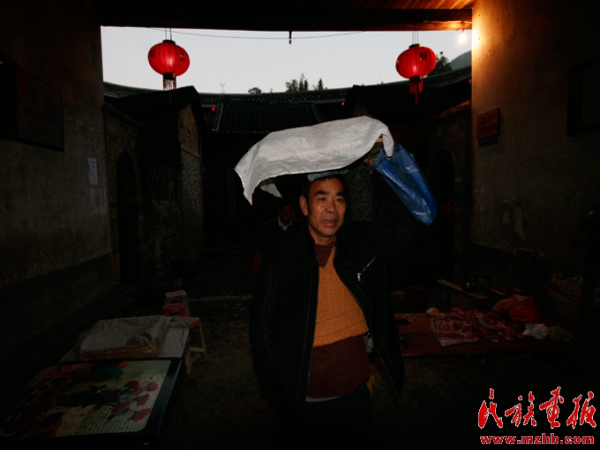 2009年,承啟樓里共有11個(gè)人結(jié)婚,江勝洪農(nóng)歷二月結(jié)婚,是最早的一個(gè),按常規(guī)他成為2010年元宵節(jié)舞龍的負(fù)責(zé)人。他說,一般舞龍隊(duì)需要20個(gè)人以上,2個(gè)人負(fù)責(zé)打鼓, 4個(gè)人敲鑼,近10個(gè)人舞龍,其他人輪換。