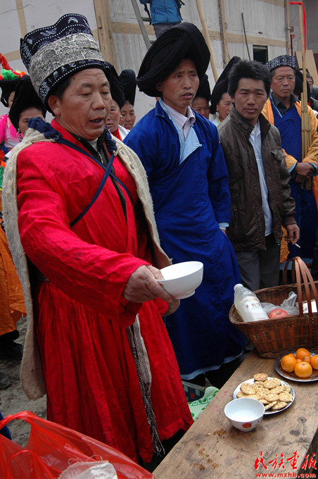 鼓師帶領(lǐng)族人在村口祭牛神
