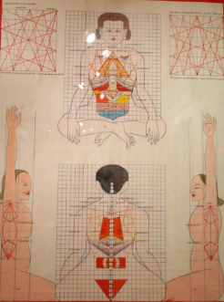 在上述80幅唐卡中:屬于藏醫(yī)學(xué)基礎(chǔ)理論方面,樹喻學(xué)說見于唐卡(2)—(4)。唐卡(18)按照人體“龍”、“赤巴”、“培根”的“三大因素”學(xué),提出了它們是維持生命的物質(zhì)基礎(chǔ),人體平衡失調(diào)均可致病。