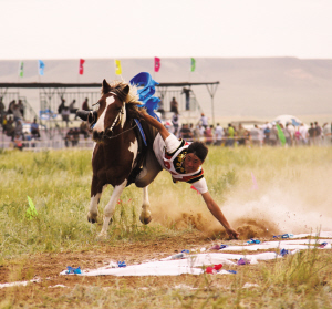 8日上午8時30分,矯健的騎手們騎著駿馬首先入場。在一場激情的馬頭琴團(tuán)體表演過后,來自全區(qū)12個盟市的代表團(tuán)昂首闊步相繼入場。之后,精彩的大型文藝表演從不同角度熱情贊美了內(nèi)蒙古的自然風(fēng)光和英雄史詩,充分展示了內(nèi)蒙古悠久絢爛的文化和草原兒女昂揚(yáng)向上的精神風(fēng)貌。隨后幾天的體育賽事,更是精彩紛呈,展現(xiàn)了獨(dú)特的草原體育文化和體育精神。