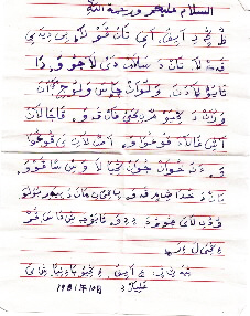 普查小組征集到的上世紀(jì)80年代,遠(yuǎn)在新疆的東鄉(xiāng)人用“小經(jīng)”文字給親戚寫的家信,內(nèi)容是索要戶口本。資料圖片