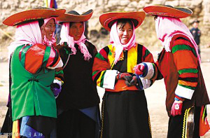 隨著時(shí)代的更替,土族女性的服飾發(fā)生了很大變化,有的傳統(tǒng)服飾已消失,有的服飾經(jīng)過(guò)推陳出新,重放光彩。如舊時(shí)的繡花高領(lǐng),如今變成直翻兩用領(lǐng);蓋在“扭達(dá)”上的長(zhǎng)頭巾——“扭達(dá)爾秀巾”,變成了今日土族女性使用的短頭巾?,F(xiàn)今,廣大土族女性,不僅喜穿本民族服飾,而且還愛(ài)著時(shí)尚服飾,她們或使土族服飾時(shí)裝化,或使時(shí)裝土族服飾化,豐富了土族的服飾文化。