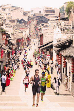 此次活動(dòng)最大的亮點(diǎn)是傳統(tǒng)古老的“非遺”文化和劃騎跑三項(xiàng)挑戰(zhàn)賽緊密結(jié)合,充分利用黎平生態(tài)資源設(shè)置比賽線路。比賽全程131.5公里,途經(jīng)德鳳、高屯、巖洞、茅貢、壩寨等5個(gè)鄉(xiāng)鎮(zhèn)(街道)。兩天時(shí)間內(nèi),選手們穿行在黎平最亮麗的精品旅游示范區(qū)域——“百里侗寨”文化體驗(yàn)走廊,穿越古木參天的森林,探秘古樸神奇的侗寨,感受清新秀麗的茶園,經(jīng)過滿載美妙愛情故事的風(fēng)雨橋,逐浪于綠如翡翠的三什江,奔跑在侗家如詩如畫的田野間,路過桂花臺、五里橋、東風(fēng)林場等多個(gè)著名景點(diǎn),在侗鄉(xiāng)黎平的多情山水和旖旎風(fēng)光中追尋健康、快樂。身著民族服裝的侗族姑娘、小伙兒,在賽事最精彩的發(fā)令、節(jié)點(diǎn)交接、終點(diǎn)沖刺階段各個(gè)環(huán)節(jié)都唱起侗族大歌助興,“掠過古夢邊緣的旋律”讓這項(xiàng)國際性的現(xiàn)代化賽事洋溢著濃濃的“中國風(fēng)”。