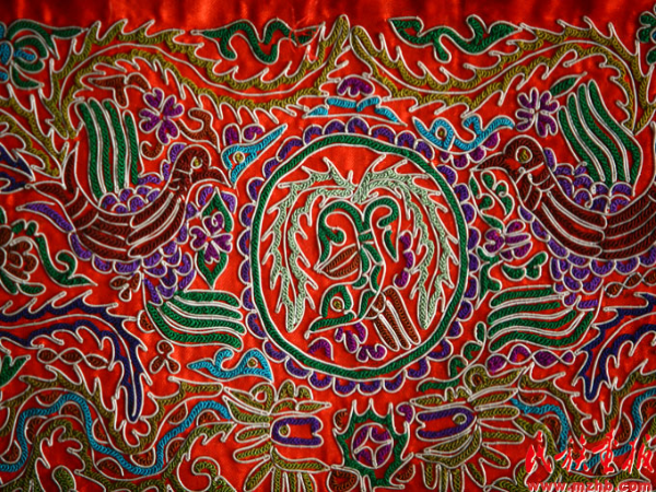 黎錦、壯錦、艾德萊斯綢、氆氌、苗繡、羌繡、馬尾繡、蠟染、扎染……當我們面對這些精美的作品時,我們很難想象到這些東西是由少數(shù)民族婦女的雙手,使用最簡單的紡車、織機等工具創(chuàng)造出來的,她們靠口傳心授把技法熟記于心,大自然是她們模仿的對象,她們制作出的服飾不僅色彩豐富,而且還將民族發(fā)展的歷程紀錄在了服飾上。很多少數(shù)民族沒有自己的文字,對自己民族歷史的記載除了口口相傳以外,他們把一些提煉升華后的符號或織或繡或染到服飾之中。苗族的服飾文化在這一點上極其突出。苗族沒有文字,苗族的歷史文化是靠口頭文學和服飾圖畫藝術來表達的。苗族老人對苗族少年講述民族歷史時,常指著服飾上的各色圖案一一道來。苗族服飾再現(xiàn)歷史的功能,成為苗族傳世的“無字史書”。