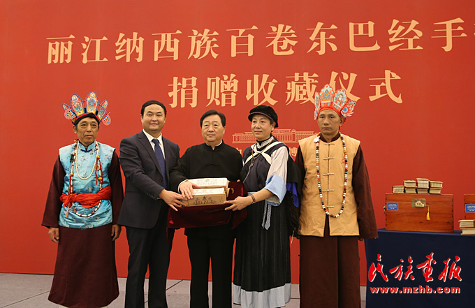 2017年12月7日上午,云南省麗江市委市政府向中國(guó)國(guó)家博物館捐贈(zèng)《云南麗江納西族一百五十卷東巴經(jīng)手抄本》及《納西東巴古籍譯注全集》(100卷)儀式在中國(guó)國(guó)家博物館舉辦。