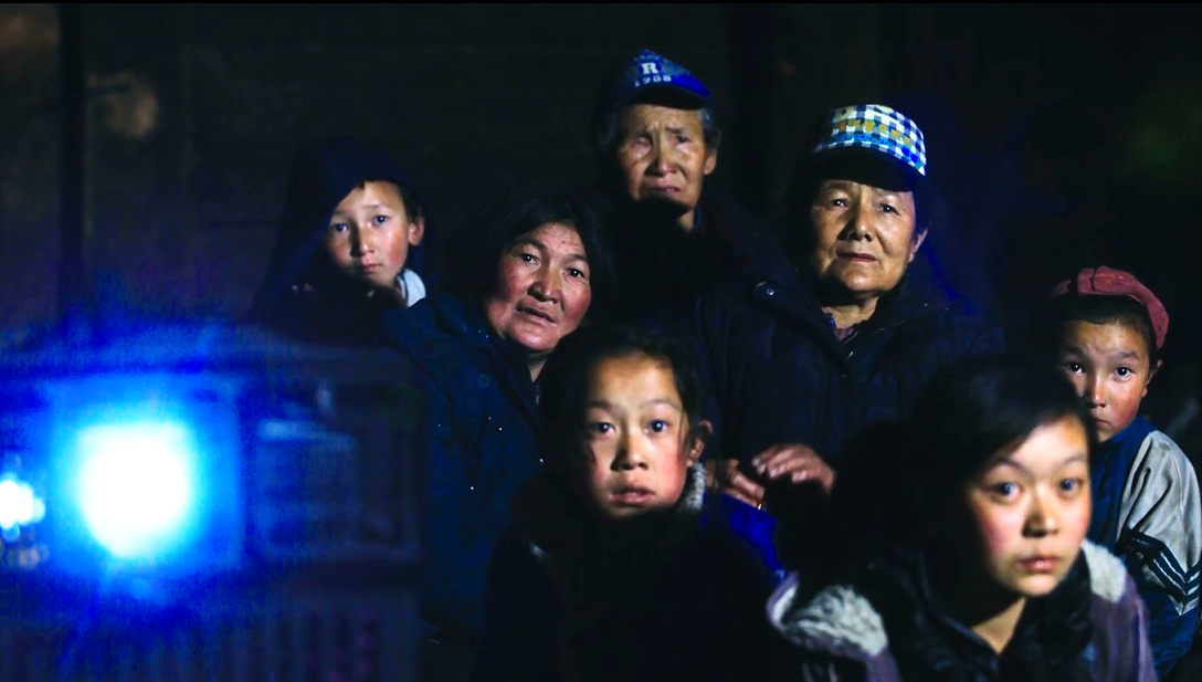 圖片說(shuō)明:認(rèn)真看電影的村民