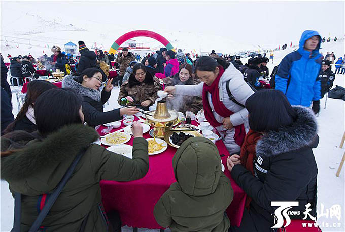 此次冰雪旅游文化節(jié)持續(xù)兩日,內(nèi)容豐富多樣,除了歌舞表演外,還將各類民俗文化與冰雪主題相融合,將伊犁各族群眾的特色生活方式融入冰雪主題活動中。文化節(jié)設有雪地摩托車、民俗體育活動、冬宰文化展示及美食匯、千人雪上涮火鍋、冰雪篝火音樂節(jié)、雪山煙花宴、雪夜宿天山、那拉提冬雪攝影節(jié)等板塊,各個板塊交互式進行,“體驗”和“互動”貫穿了整個活動過程,拓展了游客對雪和冬季的認知。
