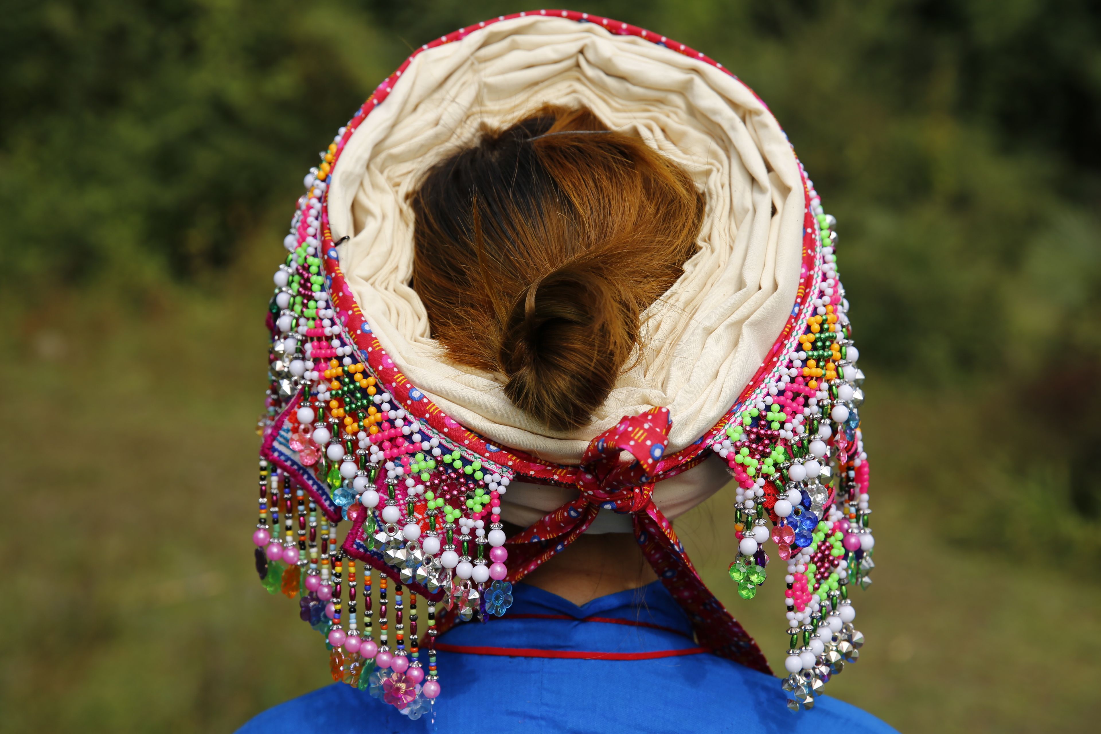 圖片說(shuō)明:貴州貴陽(yáng)苗族女子頭飾