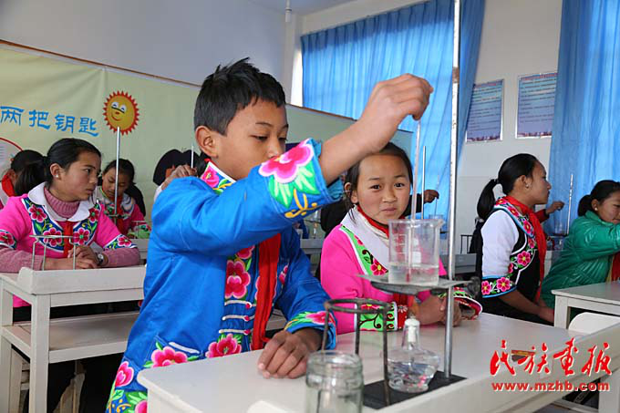 臘灣民族小學四年級的學生在上實驗課