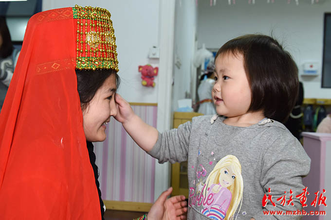 自2014年首場“民族風(fēng)吹進(jìn)幼兒園,愛心曲唱暖身邊人”公益活動獲得積極反響后,幼兒園黨支部、工會、團(tuán)支部牽手園區(qū)民族團(tuán)結(jié)共建單位,走出校園、貼近社區(qū),以愛心義賣、義拍、定向捐助等方式為園區(qū)少數(shù)民族困難家庭送去關(guān)懷。在近幾年的園區(qū)民族工作實踐中,天恒名都幼兒園的“家、校、社、企”聯(lián)動模式不斷發(fā)展創(chuàng)新,培育孵化出少數(shù)民族(幼教)實習(xí)點(diǎn)、少數(shù)民族志愿者服務(wù)隊等形式的實習(xí)模式。2013年至今,幼兒園已為上海市群益職業(yè)技術(shù)學(xué)校的“新疆班”學(xué)生210人次提供了實習(xí)崗位。