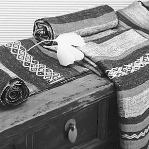 雖然《梭說侗錦亞麻系列》在材質(zhì)、色彩等方面都有別于傳統(tǒng)侗錦,但其紋樣和工藝卻脫胎于傳統(tǒng)侗錦。楊苗說,他們作品的主色系來源于侗族吊腳樓和生活,圖案是采集了傳統(tǒng)侗族紋樣重新排列組合而設(shè)計的。