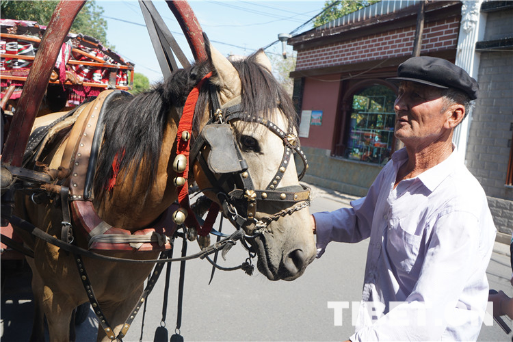 走在古巷中,你會聽到駕駛“哈迪克”(馬車)的維吾爾族老人的吆喝聲。招招手打個“馬的”,在嗒嗒的馬蹄聲和叮咚悅耳的馬鈴聲中,穿梭在一條條曲徑通幽的小路間,一路前往獨具特色的庭院和百年民居。每一條街道風(fēng)情各異,每一條小巷曲折有致,仿佛走進(jìn)了一座建筑博物館。圖為駕駛“哈迪克”的老人。