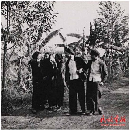“歌圩”是桂西壯族古老的風(fēng)俗。每年農(nóng)歷正月、二月、四月都有歌圩日。圖為1957年廣西壯族自治區(qū)憑祥市郊區(qū)的歌圩日,這里不但處處歡歌笑語(yǔ),還有搶花炮、演壯戲、舞彩龍、舞彩鳳、唱桂劇等很豐富的文娛活動(dòng)