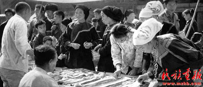 1980年,全國民族地區(qū)落實(shí)黨的民族政策,切實(shí)尊重少數(shù)民族的傳統(tǒng)習(xí)慣,轟轟烈烈地恢復(fù)民族傳統(tǒng)集市,以最短的時(shí)間恢復(fù)生產(chǎn)、發(fā)展自由貿(mào)易、豐富群眾生活。圖為貴州苗族農(nóng)村市場開始活躍起來《民族畫報(bào)》1982年第1期