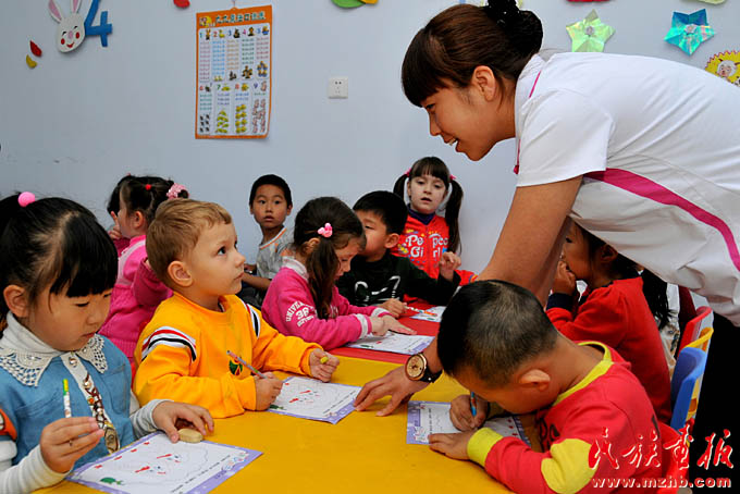 共建“一帶一路”是以習(xí)近平同志為核心的黨中央著眼于我國改革開放和長遠(yuǎn)發(fā)展提出的重大國際合作倡議。隨著邊境往來不斷密切,周邊國家越來越多的人選擇到中國來學(xué)習(xí)文化,客觀上增進(jìn)了感情。圖為2017年俄羅斯的小朋友在吉林琿春學(xué)習(xí)中國文化?!睹褡瀹媹?bào)》2017年第4期