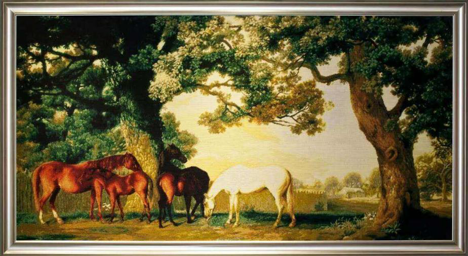 一般畫(huà)面較大,多數(shù)復(fù)制名畫(huà)、人物和風(fēng)景照片。用線顏色往往達(dá)數(shù)百種,特別強(qiáng)調(diào)色階、色相的過(guò)渡,并注重人物神態(tài)的刻畫(huà)。作品常作為大型建筑的室內(nèi)裝飾。
