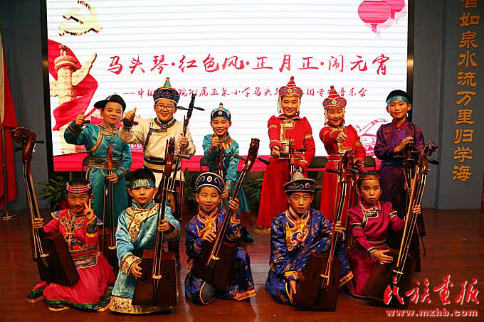 2019年 2月19日,中國(guó)科學(xué)院附屬玉泉小學(xué)馬頭琴藝術(shù)團(tuán)在京舉辦“馬頭琴?紅色風(fēng)?正月正?鬧元宵”專場(chǎng)音樂會(huì)