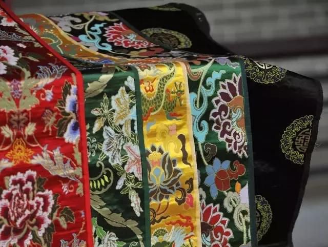 其次,它采用了雙經(jīng)軸織造,其中一組較為纖細(xì)的經(jīng)線(稱接結(jié)經(jīng)或面經(jīng)),用來接結(jié)正反面長浮的緯線,使織物花紋更為豐滿肥亮,質(zhì)地較經(jīng)錦和緯錦更輕薄,更適于日常的服飾和書畫的裝裱。