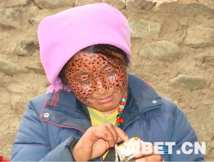 圖為涂擦“安達”的西藏婦女