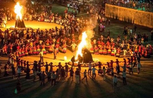 對太陽的崇拜造就了彝族人民的自然崇拜,那就是與太陽最為相關(guān)的火焰,因此“火”自然就成為了彝族人追求光明的象征。在彝族地區(qū),對火的崇拜與祭祀非常普遍,每年農(nóng)歷六月二十四至二十七日就是彝族人民的“火把節(jié)”,云南瀘西縣彝族還會在正月初一和六月二十四,由家庭主婦選一塊最肥的肉扔進燃燒的火塘祈禱火神護佑平安。
