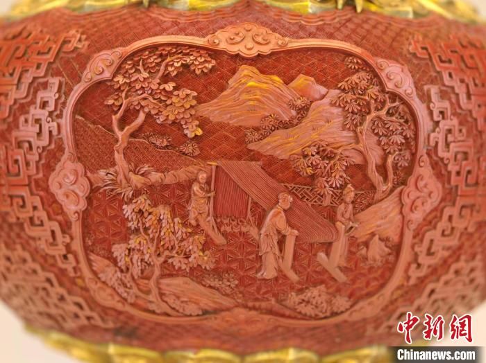 沈陽故宮博物館相關(guān)負(fù)責(zé)人表示,此件漆器工不厭精,裝飾富麗,帶有乾隆朝剔紅漆器精致華美、大氣雍容的時(shí)代風(fēng)格,反映了清代盛世的審美趣味。男耕女織的雕刻圖景反映清朝統(tǒng)治者以農(nóng)桑為治國之本的思想觀念。此次沈陽故宮展出乾隆款剔紅開光山水人物紋龍耳瓶,意在用文物展現(xiàn)中華文明之美,讓人們感受中國傳統(tǒng)藝術(shù)珍品的博大精深和意境之美。