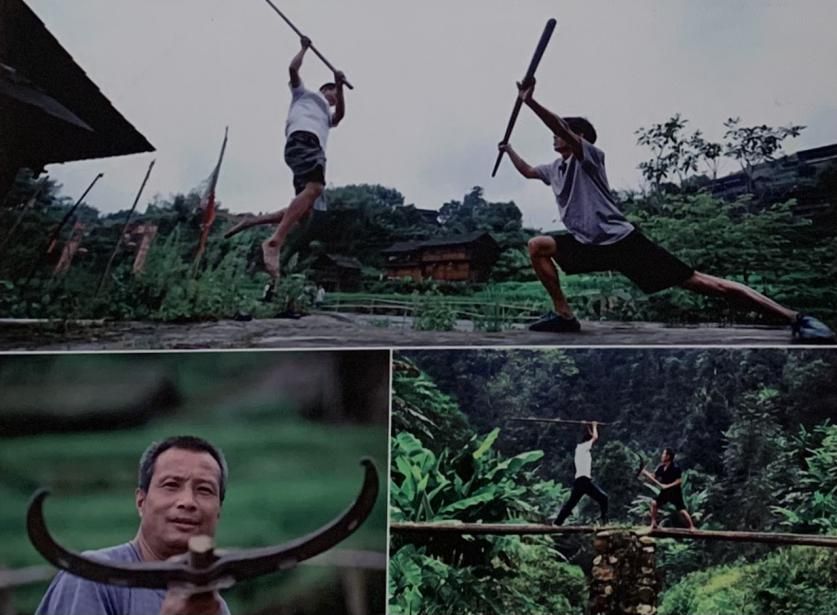 貴州天柱縣甘溪侗寨人人自幼習(xí)武,身懷絕技,家里的鋤頭、釘耙、板凳、柴刀等都是他們防身的武器,其地域流行的六家拳、洪門棍套路更是享譽(yù)天下。月牙鏜、鐵尺都是獨具特色的武術(shù)器械。