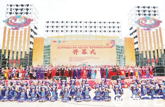 2021年中國壯鄉(xiāng)·武鳴“壯族三月三”歌圩暨駱越文化旅游節(jié)開幕式現(xiàn)場。記者葉子榕 攝