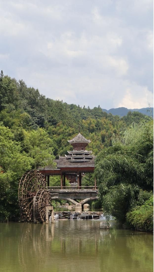 侗族的公共建筑獨(dú)具一格,分布錯落有致,展示了侗族高超的木作建筑水平。侗寨入處都建有美麗的寨門,既裝飾侗寨,還承擔(dān)侗寨的迎賓禮儀功能,寨內(nèi)、寨外涉河處,一般建有廊橋合一的花橋;寨子中央最醒目處,往往高聳著標(biāo)志性建筑——鼓樓;鼓樓附近,均有形似吊腳樓的戲臺,是侗家人觀看戲的場所。