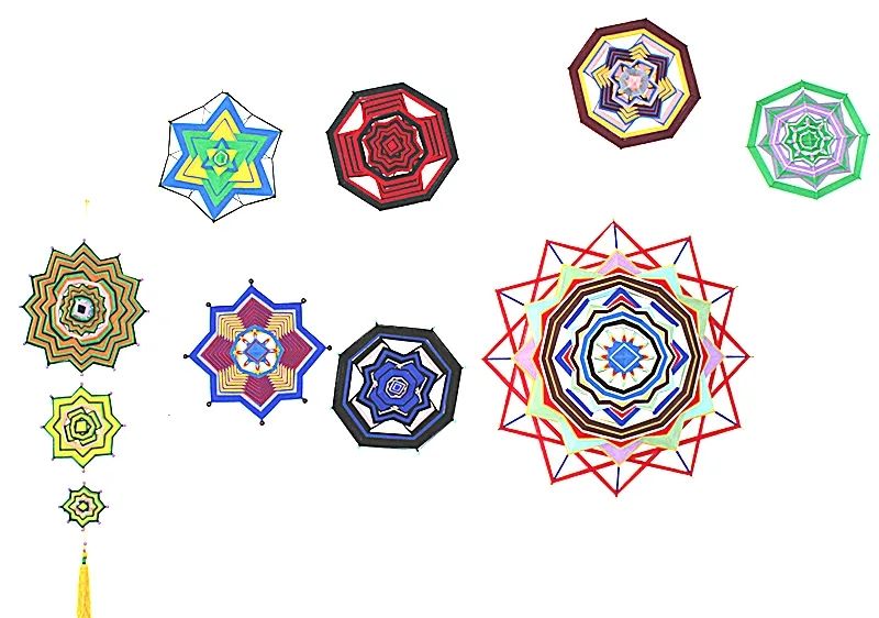 科爾沁繩編設(shè)計(jì)精巧,尤其擅長表現(xiàn)游牧民族生活之美, 具有地域民族風(fēng)情之美,繩結(jié)造型多為上下一致、左右對稱、正反相同、首尾銜接。一根彩繩通過綰、結(jié)、穿、纏、繞、編、抽等多種工藝技巧,按照章法循環(huán)有致、連綿不斷編制而成。近代由于蒙漢文化的融合,繩編技法也開始相通了。