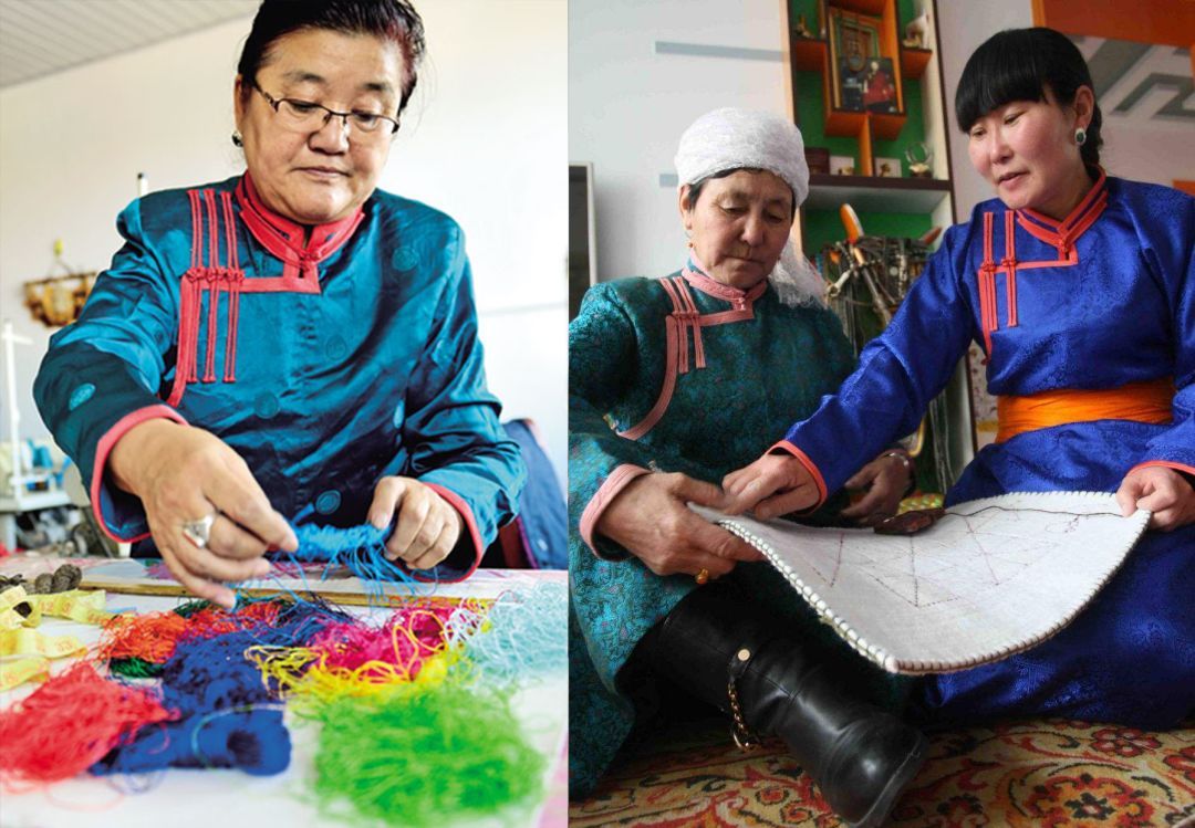 蒙古包穹頂?shù)絻?nèi)壁,從門簾到地上鋪的毛氈,從日常家居的蓋布到商旅使用的茶鹽袋,蒙古族人將細(xì)膩的各式花樣運(yùn)用在食衣住行的各個(gè)方面。而這些精美絕倫的裝飾都有一個(gè)共同的名字,那就是蒙古族氈繡技藝。