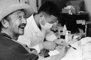 中央民族大學藥學院師生為北京市懷柔區(qū)老溝門村村民開展義診活動。