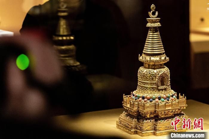 藏傳佛教法器金嵌松石佛塔?!∈烂=z館供圖